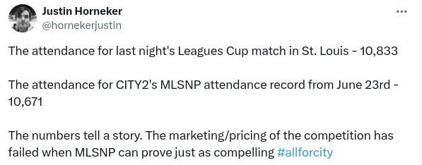 Low attendance at soccer matches can happen anywhere. It can happen in the U.S. Open Cup and it can happen in the Leagues Cup. It can happen in MLS and it can happen in Europe and South America. It can even happen in the soccer capital, St. Louis.